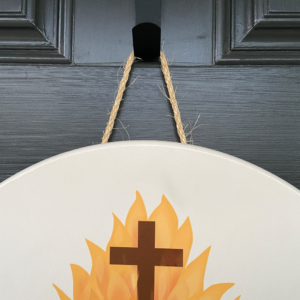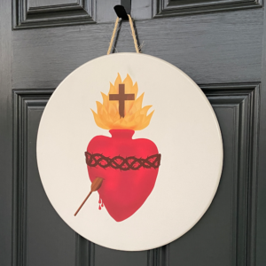Our own Sacred Heart of Jesus design applied to a half inch thick sturdy wooden door sign.